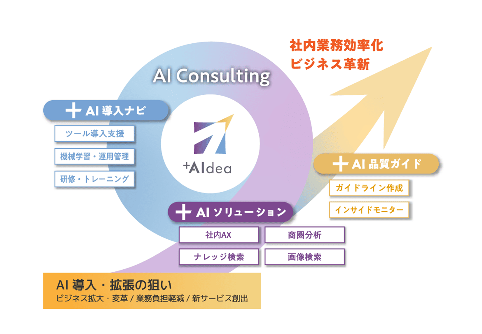 アドソル日進は「+AIdea」を通して、AI活用のコンサルから導入・開発、保守運用まで、お客さまとの"伴走支援"をいたします。